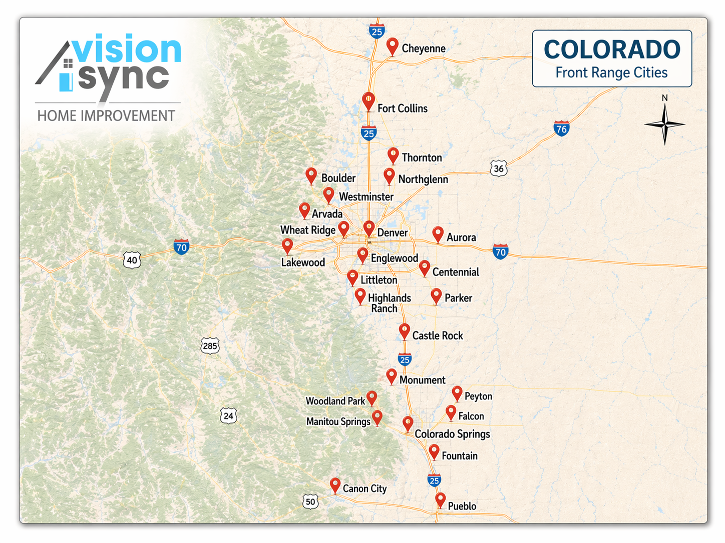 Vision Sync Home Improvement is a premiere home remodeling company accepting jobs throughout the Front Range as far north as Cheyenne, WY and as far south as Pueblo, CO.
